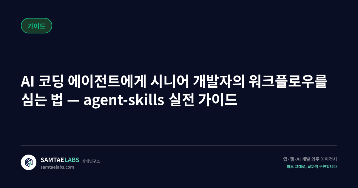 에이전시를 운영하면서 느낀 건, 에이전트에게 부족한 건 코딩 실력이 아니라 시니어 엔지니어가 당연하게 밟는 절차 감각이다. 이걸 자동화하는 시도가 agent-skills다.