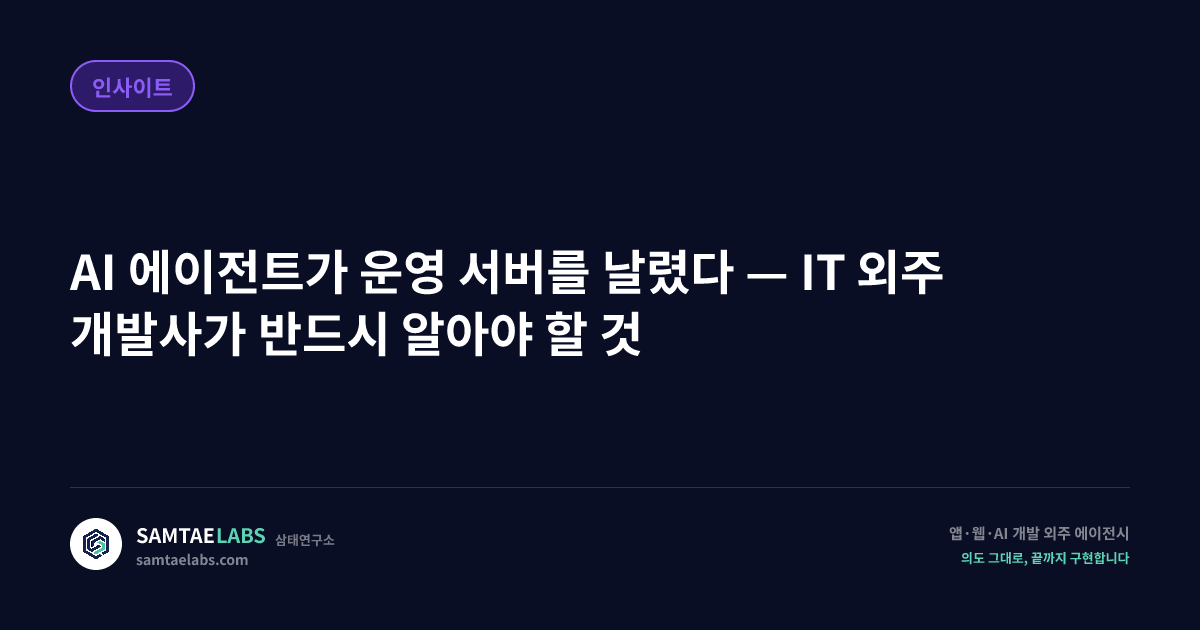 AI 에이전트가 운영 서버를 날렸다 — IT 외주 개발사가 반드시 알아야 할 것 (twitter.com)