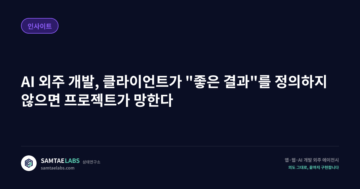 AI 기능을 외주 개발할 때 가장 자주 발생하는 실패 패턴은 기술 부족이 아니라 품질 기준의 부재다. 개발사는 요구사항대로 만들었다고 하고, 클라이언트는 "이게 아닌데"라고 하는 상황. 서로 틀린 말을 하는 게 아니다. 애초에 무엇이 좋은 결과인지를 합의하지 않았기 때문에 생기는 문제다.