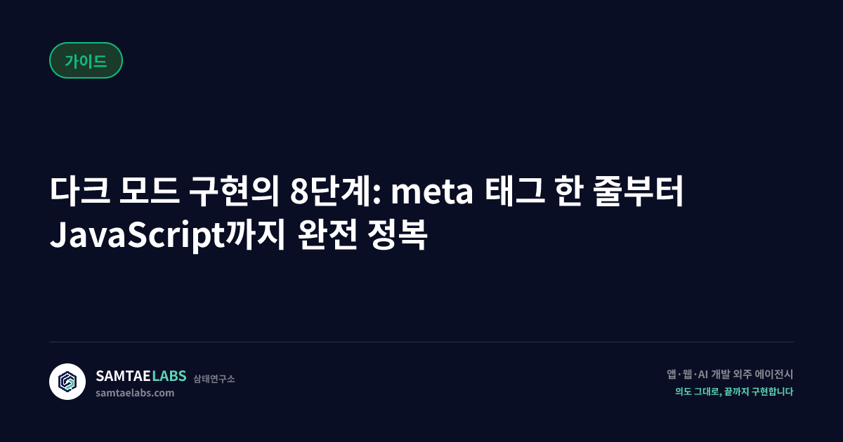 meta 태그 한 줄로 시작해 JavaScript 제어까지, 다크 모드 구현을 8단계로 나눠 상황에 맞게 선택할 수 있다.