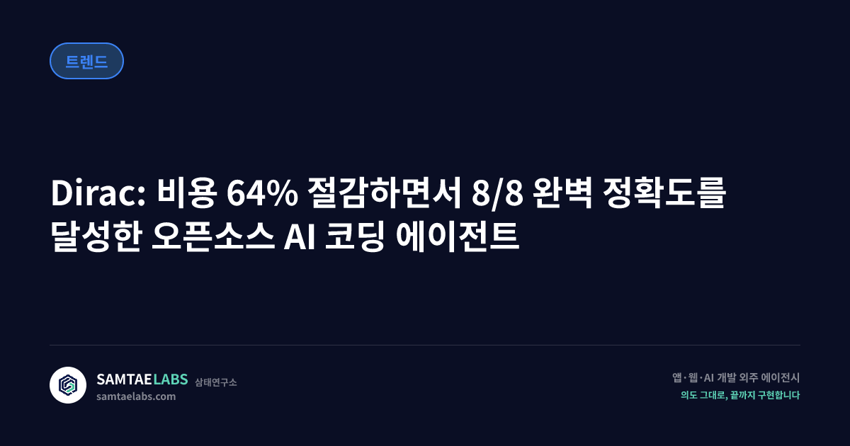 AI 코딩 에이전트 시장에서 성능과 비용은 대개 트레이드오프 관계로 여겨진다. Dirac은 이 전제를 정면으로 반박하는 오픈소스 프로젝트다.
