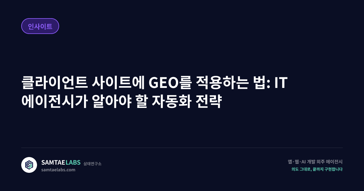 클라이언트 사이트에 GEO를 적용하는 법: IT 에이전시가 알아야 할 자동화 전략
