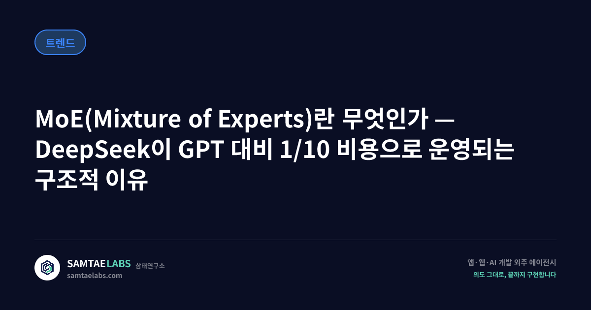 MoE(Mixture of Experts)는 AI 모델의 추론 비용 구조를 근본적으로 바꾸는 아키텍처다.