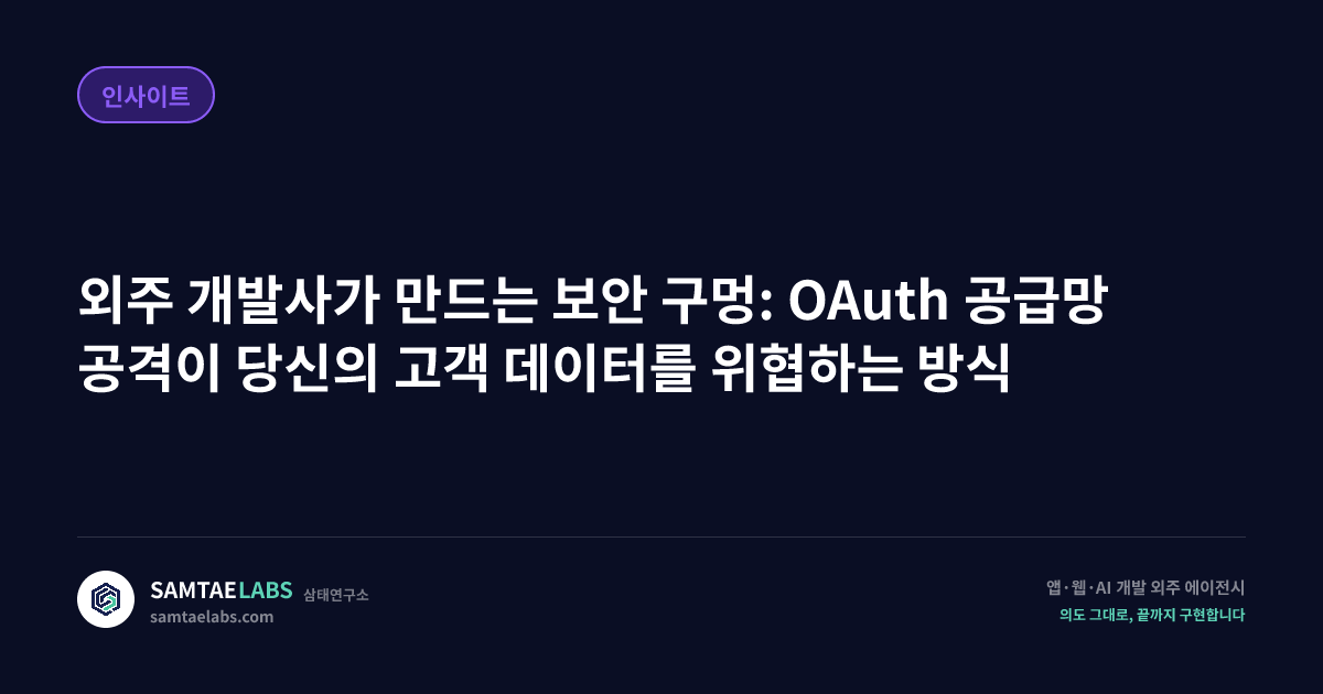 OAuth 공급망 공격은 외부 서드파티 애플리케이션에 부여된 접근 권한을 탈취해 그 권한이 연결된 내부 시스템까지 침투하는 방식의 사이버 공격이다. 최근 글로벌 배포 플랫폼에서 발생한 실제 침해 사고는 이 공격 방식이 얼마나 조용하고, 빠르고, 넓게 퍼질 수 있는지를 명확하게 보여줬다. IT 개발 에이전시 입장에서 이 사건은 남의 일이 아니다.